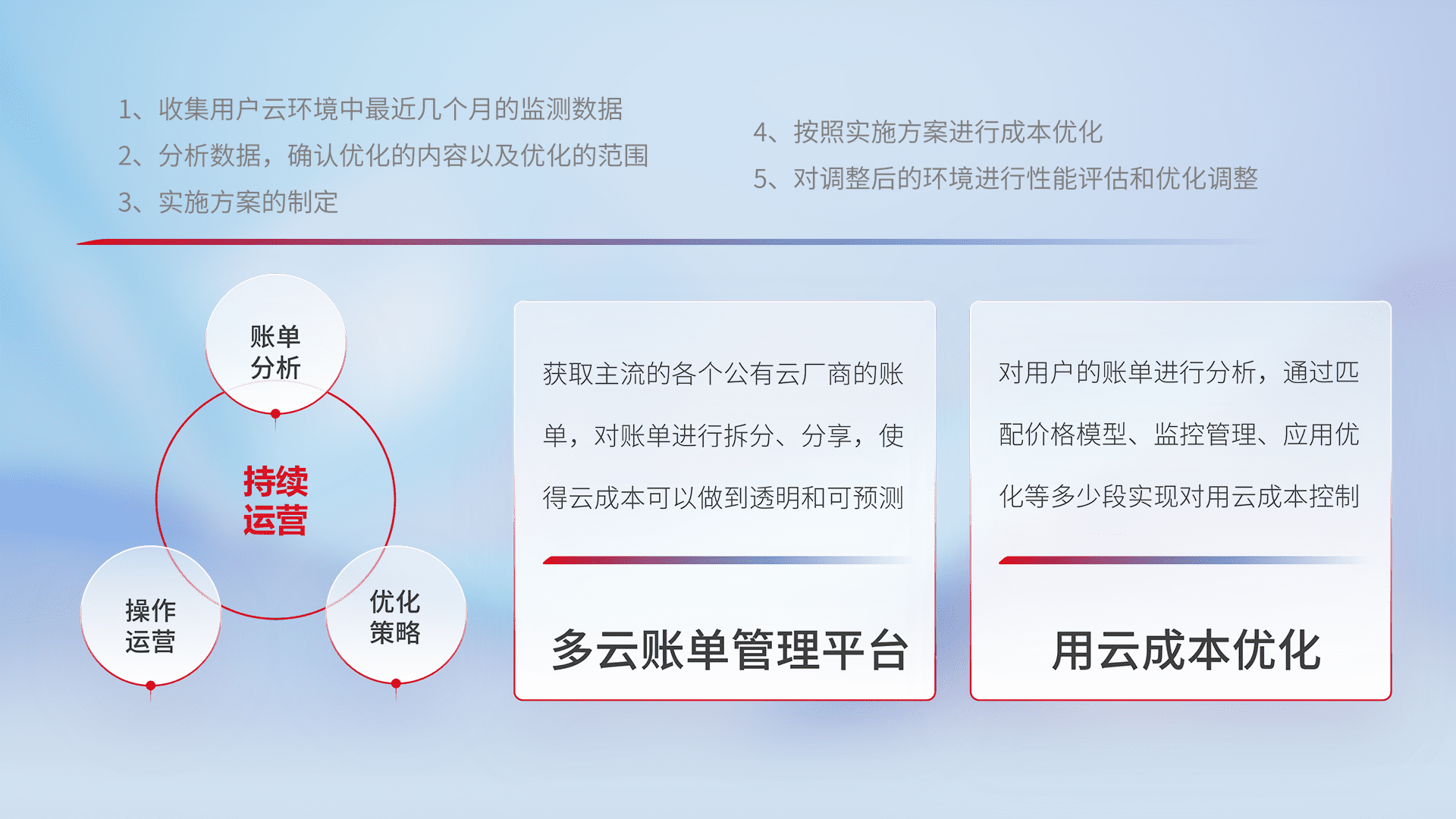 运用智能化工具分析云资源,,提供日常费用可视化工具,,自动账单拆分,,成本优化云上费用,,降本增效。。